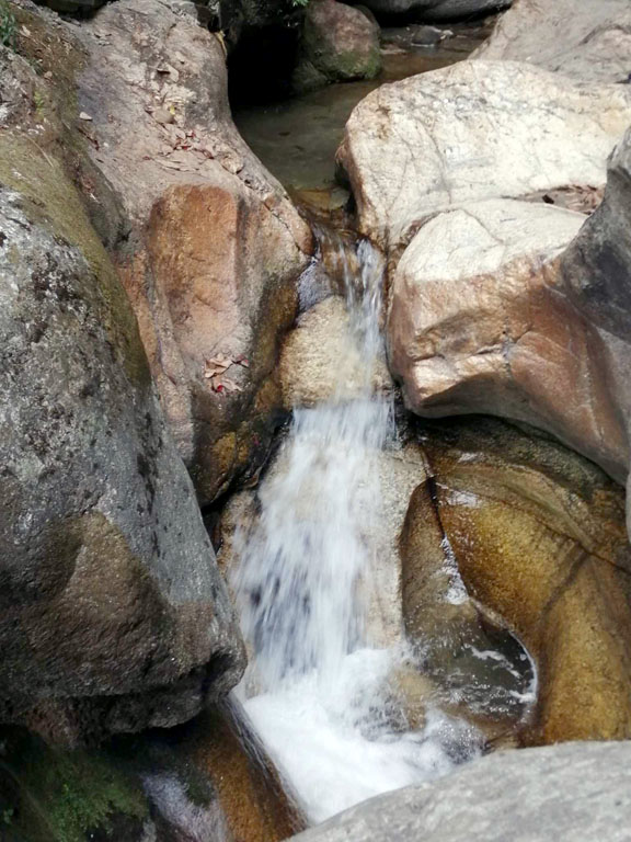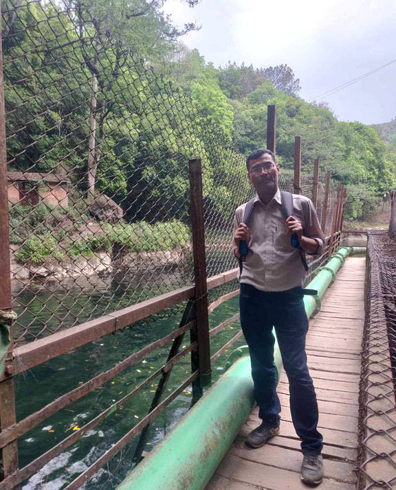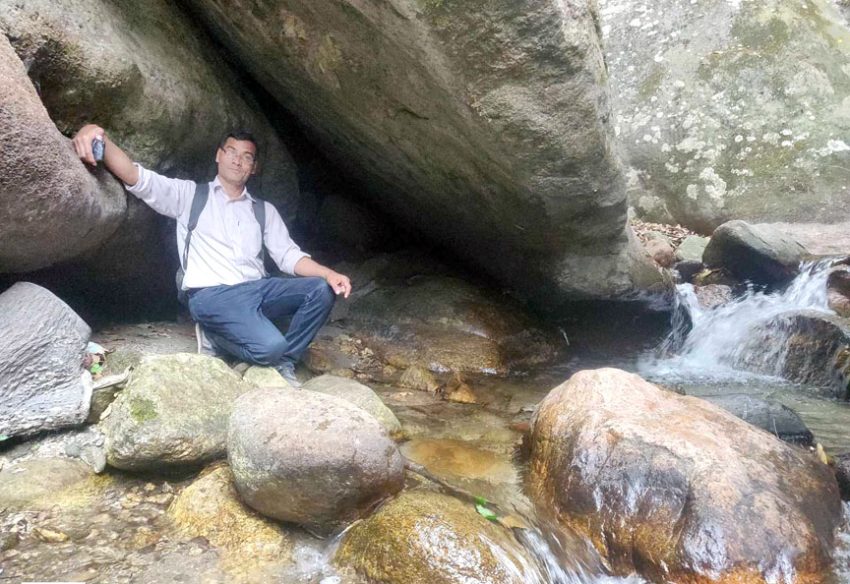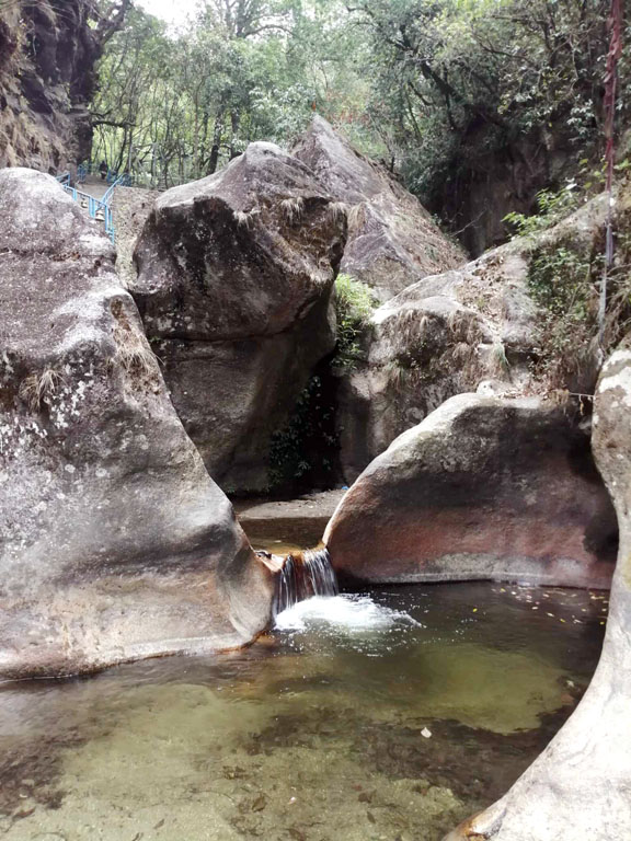 फिर्ता हिडेको पन्द्र मिनेटजति पछि एक खुल्ला चौरमा थचक्क बसें के भनुँ, पल्टियौं । एकैछिनमा केही बेर भुसुक्क निदाउन पनि पुगेछु । निकै आराम भयो । बीस मिनेट जति त्यहाँ बिताएर पुनः बाटो लाग्छौं । अघि ढिलो होला भनी हेरेर मात्रै गएको ऐंसेलु अब निर्धक्क भएर टिपेर खान भ्याएका छौं । ठाउँ ठाउँमा फोटो पनि खिच्छौं । स्तूप निर्माण स्थलमा पुग्दा भने झण्डै बाटो बिसाएको, कता पुग्ने हो थाहा भएन । पुनः सही बाटो पक्रेर फिर्ता हुन्छौं र पोखरीमा नै पुग्छौं । हामीसँग समय छ, तसर्थ एकातर्फको मन्दिरसम्म जाने निधो गर्छौं र लाग्छौं । खोंचमा रहेछ मन्दिर । मन्दिरको नाम सुन्दरी माई रे । खुड्किलाहरू बनेकोछ, बार पनि छ । तल भइसकेपछि फलामको पुल पनि रहेछ पारी पुग्ने । माथिबाट हेर्दा साधारण नदी र केही ठुल्ठुला ढुंगामात्रै देखिएको, होइन रहेछ, ढुंगाको आकृति निकै कलात्मक रहेछ । प्राकृतिक रूपमा पानीबाट खिइएको ती ढुंगाहरू र बगिरहेको पानी आफैमा कलात्मक देखियो । त्यतै भुल्न थाल्छौं । आकास अघिको भन्दा कालो कालो हुँदै आइरहेको छ । काठमाडौंबाट एउटा फोन आउँछ र भन्छ, घनघोर पानी परिरहेको छ । अर्को साथीलाई त्यस्तै फोन आउँछ र भन्छ, भयानक पानी परिरहेको छ । त्यो ठाउँ छाडेर माथि आउँदा चार बजेर चालीस मिनेट भइसकेछ । पानीका छिटाहरू सुरुमा अलिअलि मात्रै अलि पछि त भागमभाग हुनुपर्ने अवस्था आयो । जंगल भित्र, ओत लाग्ने गतिलो ठाउँ त छँदै थिएन । थोरै तल झरेपछि सैनिकको प्रतीक्षालय छ, त्यहीं पुग्ने हिसावले अलि दौडें, तैबल्ल भिज्नु परेन ।